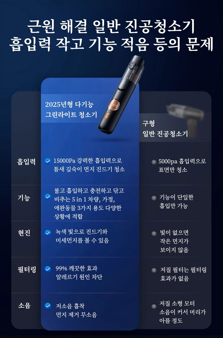 ✅스마트 그린라이트로 숨어 있는 먼지까지 찾아내 구석구석 완벽하게 청소합니다.